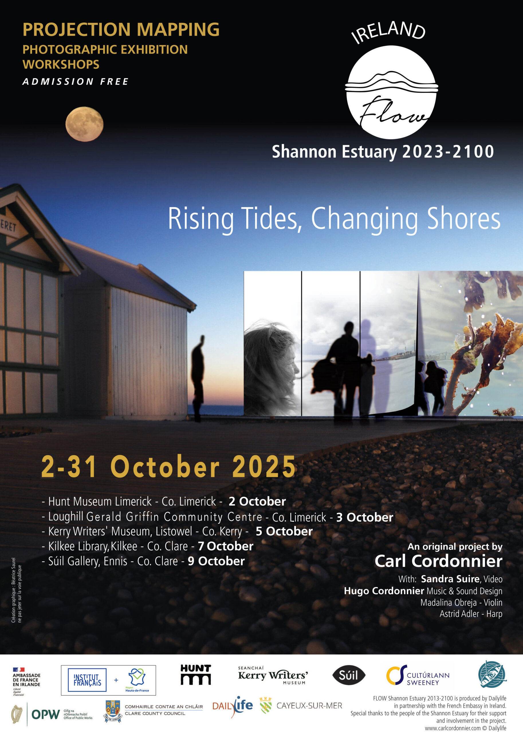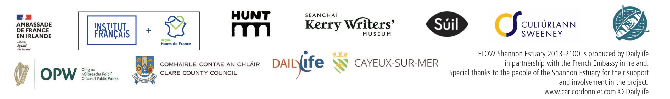 FLOW is a creation of Dailylife, presented in association with the French Embassy in Ireland, The Hunt Museum, Gerald Griffins Community Centre, Kerry Writer’s Museum, Kilkee Library, and Súil Gallery, with the support of the Institut Français, the Hauts-de-France Region, and the City of Cayeux-sur-Mer.